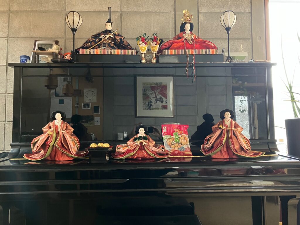 あっという間に明日で2月も終わりです。よく、1月は行ってしまい、2月は逃げていき、3月は去ってしまうと言われますが、北国にも少しづつ春が近づいてきている実感を陽の光で感じます。そしてまた、ここ数年、我が家恒例のピアノひな壇の季節がやってまいりました。例年、節分の豆まきが終了した数日後にセッティング。これが当たり前の風景になってから、かれこれもう5,6年くらいでしょうか? お人形さんには申し訳ないような気持ちもありつつ、これからもずっと続けていくのだろう・・・・ 昨年より思い立ってピアノの練習を始めました。練習の時は三人官女の皆さんには移動してもらい、しばしお内裏様とお雛様とご対面状態に。いつまでも、伝統的な文化や歴史は、ちょっと変わった形だとしても伝えていかなければいけませんね?